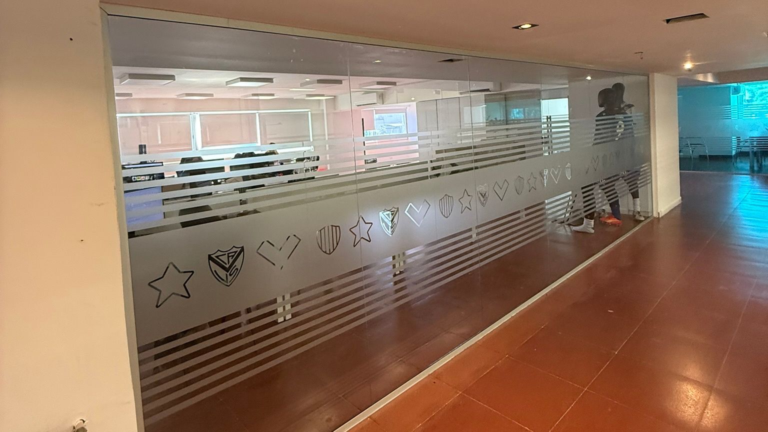 • Pasillo de Campeones (Pecera): Adecuación estética con luces spot, tabiques de Durlock, pintura gris y murales institucionales.